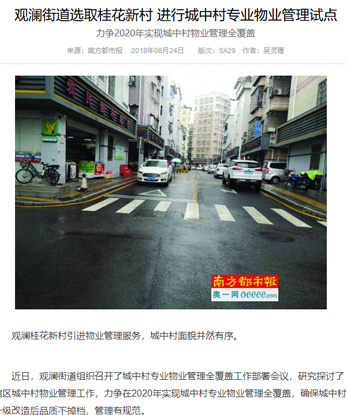 觀瀾街道選取桂花新村,進行城中村專業物業管理試點,經過各方機構評審我司榮幸為桂花新村物業安保出一份力。桂花新村將由我司鐵保宏泰深圳保安公司負責安保護衛工作。