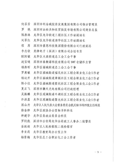 1. 2020年深圳市龍華區五一勞動獎章、獎狀獲獎名單。