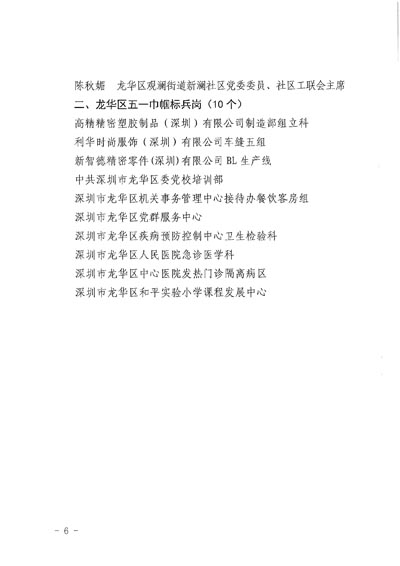 2. 2020年深圳市龍華區五一巾幗標兵、巾幗標兵崗獲獎名單。
